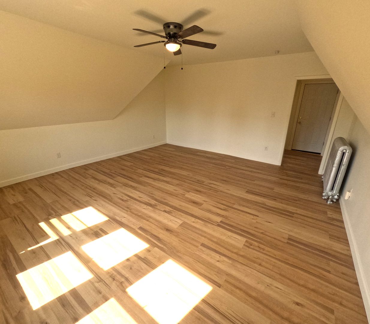 Apartment Features: Spacious attic layout with hardwood floors. Full kitchen with oven/range, refrigerator, and dishwasher. Two bedrooms with ample closet space. Full bathroom. Quiet top-floor unit — no upstairs neighbors.